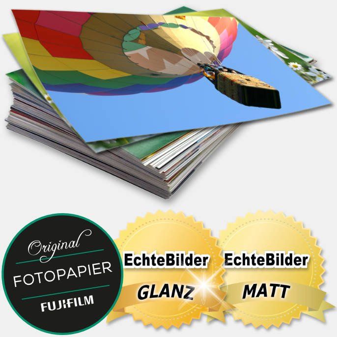 Bei uns erhalten Sie hochwertige Abzüge auf echtem Fotopapier zu attraktiven Preisen. In unserem Fachlabor entwickeln wir Ihre Bilder im bewährten klassischen Silberhalogenid Verfahren. Im Gegensatz zum Thermosublimationsverfahren, vergleichbar mit Bildern aus Drogeriemärkten, erhalten Sie bei uns eine Echtbild-Garantie. Dabei versprechen wir Ihnen besonders natürliche Farben, Schutz vor Vergilben & Verblassen, kontinuierliche Halbtonwiedergabe und leuchtende Bildweisse. Sie können aus einem großen Angebot an Bildformaten, Fotovarianten und Veredelungen wählen. Wir garantieren Ihnen Bilder für jeden Anspruch! Bei uns erfüllen wir die Fotowünsche aller Kunden, die viel Wert auf Qualität und ein gutes Preis-Leistungs-Verhältnis legen. Um die Wünsche all unserer Kunden zu erfüllen, bieten wir Ihnen Bilder in drei unterschiedlichen Qualitätsstufen an: Sparbild - Die preiswerte Variante für preisbewusste Hobbyfotografen. Qualitätsbild - Das echte Qualitätsbild für gehobene Ansprüche. Professional - High Definition Fotopapier für echte Profis und ambitionierte Semiprofis.